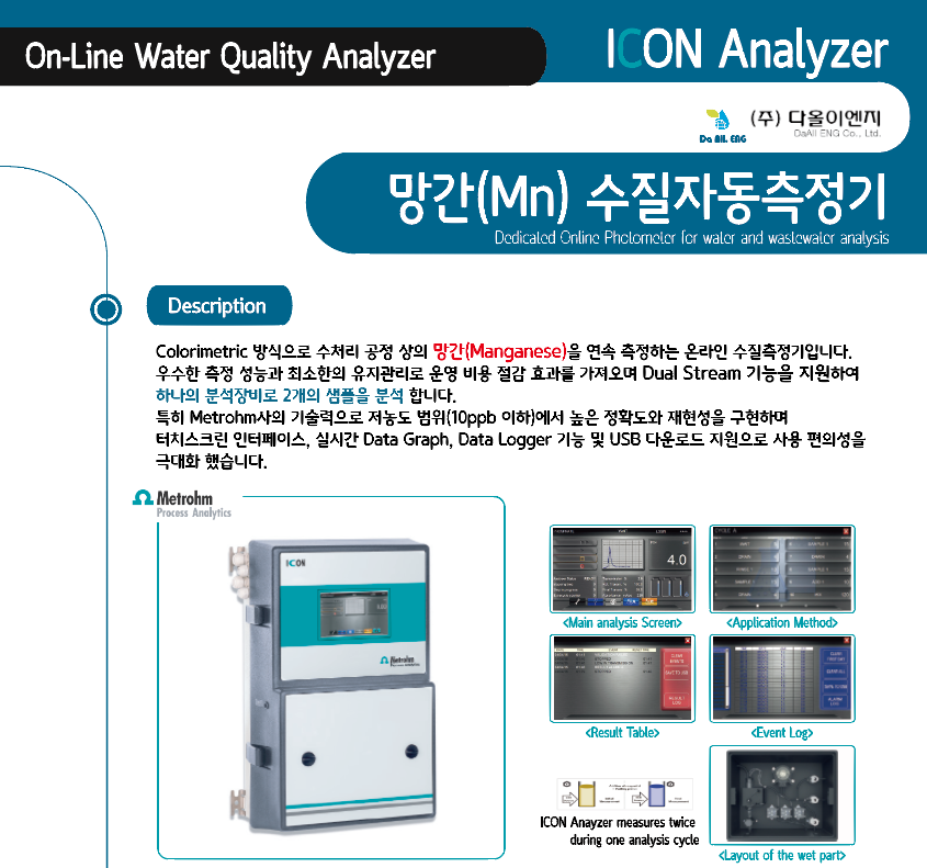 Colorimetric 방식으로 수처리 공정 상의 망간을 연속 측정하는 온라인 수질측정기